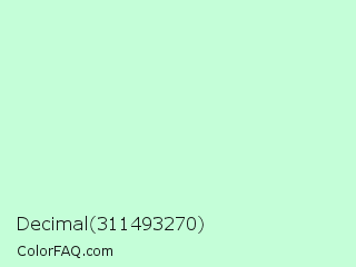 Decimal 311493270 Color is a very light green color and the nearest color is Aero Blue #c9ffe5. Hex code #c4fed8 and RGB value is rgb(196,254,216). In RGB color space, this color is composed of 77% red, 100% green, 85% blue, In CMYK color space, this color is composed of 23% cyan, 0% magenta, 15% yellow , 0% black , In HSL color space, this color has a hue angle of 141° , 97% saturation and 88% lightness.