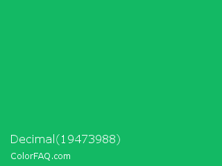 Decimal 19473988 Color is a normal green color and the nearest color is GO Green #00ab66. Hex code #13b964 and RGB value is rgb(19,185,100). In RGB color space, this color is composed of 7% red, 73% green, 39% blue, In CMYK color space, this color is composed of 90% cyan, 0% magenta, 46% yellow , 27% black , In HSL color space, this color has a hue angle of 149° , 81% saturation and 40% lightness.