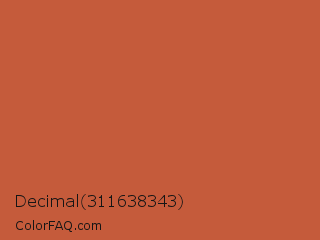 Decimal 311638343 Color is a normal red color and the nearest color is Dark Coral #cd5b45. Hex code #c55b3b and RGB value is rgb(197,91,59). In RGB color space, this color is composed of 77% red, 36% green, 23% blue, In CMYK color space, this color is composed of 0% cyan, 54% magenta, 70% yellow , 23% black , In HSL color space, this color has a hue angle of 14° , 54% saturation and 50% lightness.