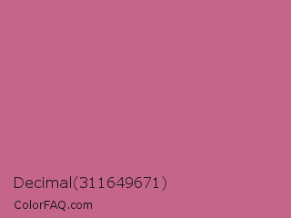 Decimal 311649671 Color is a normal rose color and the nearest color is Cinnamon Satin #cd607e. Hex code #c5658b and RGB value is rgb(197,101,139). In RGB color space, this color is composed of 77% red, 40% green, 55% blue, In CMYK color space, this color is composed of 0% cyan, 49% magenta, 29% yellow , 23% black , In HSL color space, this color has a hue angle of 336° , 45% saturation and 58% lightness.