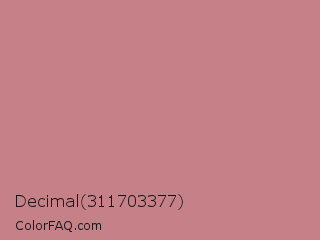 Decimal 311703377 Color is a light red color and the nearest color is Old Rose #c08081. Hex code #c58187 and RGB value is rgb(197,129,135). In RGB color space, this color is composed of 77% red, 51% green, 53% blue, In CMYK color space, this color is composed of 0% cyan, 35% magenta, 31% yellow , 23% black , In HSL color space, this color has a hue angle of 355° , 37% saturation and 64% lightness.
