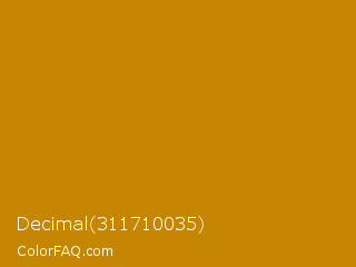 Decimal 311710035 Color is a normal orange color and the nearest color is Pirate Gold #ba7f03. Hex code #c58701 and RGB value is rgb(197,135,1). In RGB color space, this color is composed of 77% red, 53% green, 0% blue, In CMYK color space, this color is composed of 0% cyan, 31% magenta, 99% yellow , 23% black , In HSL color space, this color has a hue angle of 41° , 99% saturation and 39% lightness.