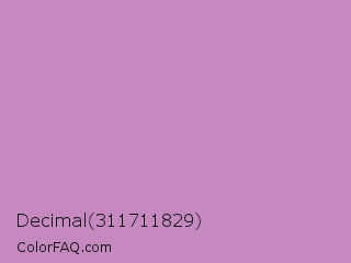 Decimal 311711829 Color is a light magenta color and the nearest color is African Violet #b284be. Hex code #c589bf and RGB value is rgb(197,137,191). In RGB color space, this color is composed of 77% red, 54% green, 75% blue, In CMYK color space, this color is composed of 0% cyan, 30% magenta, 3% yellow , 23% black , In HSL color space, this color has a hue angle of 306° , 34% saturation and 65% lightness.