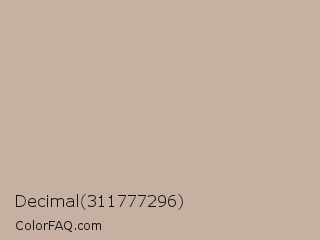 Decimal 311777296 Color is a light orange color and the nearest color is Malta #bdb2a1. Hex code #c5b0a2 and RGB value is rgb(197,176,162). In RGB color space, this color is composed of 77% red, 69% green, 64% blue, In CMYK color space, this color is composed of 0% cyan, 11% magenta, 18% yellow , 23% black , In HSL color space, this color has a hue angle of 24° , 23% saturation and 70% lightness.