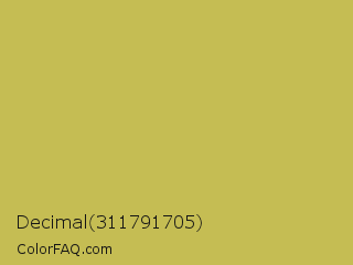 Decimal 311791705 Color is a normal yellow color and the nearest color is Vegas Gold #c5b358. Hex code #c5bd53 and RGB value is rgb(197,189,83). In RGB color space, this color is composed of 77% red, 74% green, 33% blue, In CMYK color space, this color is composed of 0% cyan, 4% magenta, 58% yellow , 23% black , In HSL color space, this color has a hue angle of 56° , 50% saturation and 55% lightness.