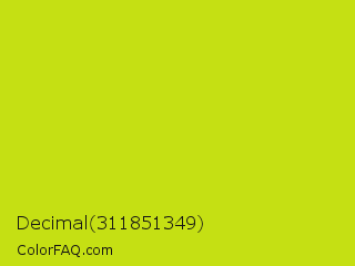 Decimal 311851349 Color is a normal yellow color and the nearest color is Las Palmas #c6e610. Hex code #c5e013 and RGB value is rgb(197,224,19). In RGB color space, this color is composed of 77% red, 88% green, 7% blue, In CMYK color space, this color is composed of 12% cyan, 0% magenta, 92% yellow , 12% black , In HSL color space, this color has a hue angle of 68° , 84% saturation and 48% lightness.