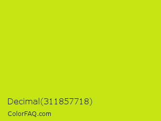 Decimal 311857718 Color is a normal yellow color and the nearest color is Las Palmas #c6e610. Hex code #c5e514 and RGB value is rgb(197,229,20). In RGB color space, this color is composed of 77% red, 90% green, 8% blue, In CMYK color space, this color is composed of 14% cyan, 0% magenta, 91% yellow , 10% black , In HSL color space, this color has a hue angle of 69° , 84% saturation and 49% lightness.