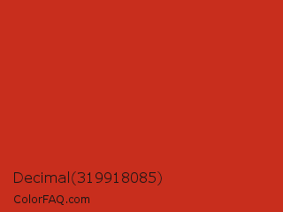 Decimal 319918085 Color is a normal red color and the nearest color is Thunderbird #c02b18. Hex code #c82e1d and RGB value is rgb(200,46,29). In RGB color space, this color is composed of 78% red, 18% green, 11% blue, In CMYK color space, this color is composed of 0% cyan, 77% magenta, 86% yellow , 22% black , In HSL color space, this color has a hue angle of 6° , 75% saturation and 45% lightness.