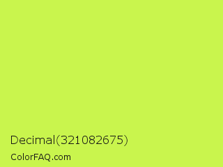 Decimal 321082675 Color is a light lime color and the nearest color is Maximum Green Yellow #d9e650. Hex code #c9f54d and RGB value is rgb(201,245,77). In RGB color space, this color is composed of 79% red, 96% green, 30% blue, In CMYK color space, this color is composed of 18% cyan, 0% magenta, 69% yellow , 4% black , In HSL color space, this color has a hue angle of 76° , 89% saturation and 63% lightness.