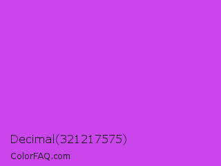 Decimal 321217575 Color is a normal purple color and the nearest color is Medium Orchid #ba55d3. Hex code #ca46eb and RGB value is rgb(202,70,235). In RGB color space, this color is composed of 79% red, 27% green, 92% blue, In CMYK color space, this color is composed of 14% cyan, 70% magenta, 0% yellow , 8% black , In HSL color space, this color has a hue angle of 288° , 80% saturation and 60% lightness.