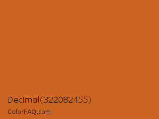 Decimal 322082455 Color is a normal orange color and the nearest color is Piper #c96323. Hex code #cb6521 and RGB value is rgb(203,101,33). In RGB color space, this color is composed of 80% red, 40% green, 13% blue, In CMYK color space, this color is composed of 0% cyan, 50% magenta, 84% yellow , 20% black , In HSL color space, this color has a hue angle of 24° , 72% saturation and 46% lightness.