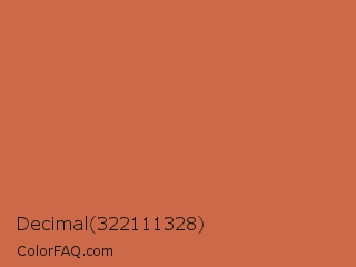 Decimal 322111328 Color is a normal color and the nearest color is Copper Red #cb6d51. Hex code #cb6948 and RGB value is rgb(203,105,72). In RGB color space, this color is composed of 80% red, 41% green, 28% blue, In CMYK color space, this color is composed of 0% cyan, 48% magenta, 65% yellow , 20% black , In HSL color space, this color has a hue angle of 15° , 56% saturation and 54% lightness.