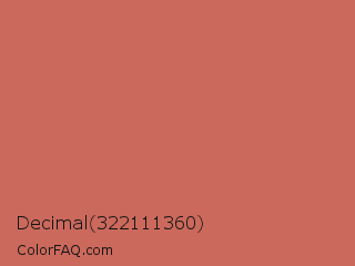 Decimal 322111360 Color is a normal red color and the nearest color is Fuzzy Wuzzy #cc6666. Hex code #cb695c and RGB value is rgb(203,105,92). In RGB color space, this color is composed of 80% red, 41% green, 36% blue, In CMYK color space, this color is composed of 0% cyan, 48% magenta, 55% yellow , 20% black , In HSL color space, this color has a hue angle of 7° , 52% saturation and 58% lightness.
