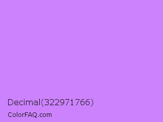 Decimal 322971766 Color is a light purple color and the nearest color is Bright Lilac #d891ef. Hex code #cc82fc and RGB value is rgb(204,130,252). In RGB color space, this color is composed of 80% red, 51% green, 99% blue, In CMYK color space, this color is composed of 19% cyan, 48% magenta, 0% yellow , 1% black , In HSL color space, this color has a hue angle of 276° , 95% saturation and 75% lightness.