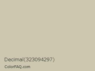 Decimal 323094297 Color is a light yellow color and the nearest color is Thistle Green #cccaa8. Hex code #ccc8af and RGB value is rgb(204,200,175). In RGB color space, this color is composed of 80% red, 78% green, 69% blue, In CMYK color space, this color is composed of 0% cyan, 2% magenta, 14% yellow , 20% black , In HSL color space, this color has a hue angle of 52° , 22% saturation and 74% lightness.