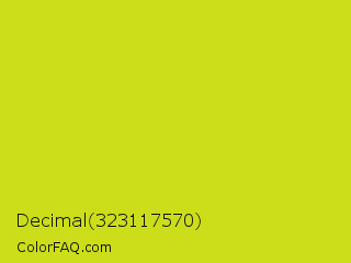 Decimal 323117570 Color is a normal yellow color and the nearest color is Bitter Lemon #cae00d. Hex code #ccde1a and RGB value is rgb(204,222,26). In RGB color space, this color is composed of 80% red, 87% green, 10% blue, In CMYK color space, this color is composed of 8% cyan, 0% magenta, 88% yellow , 13% black , In HSL color space, this color has a hue angle of 66° , 79% saturation and 49% lightness.