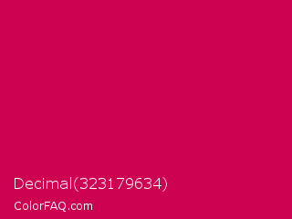 Decimal 323179634 Color is a normal rose color and the nearest color is Rubine Red #d10056. Hex code #cd0250 and RGB value is rgb(205,2,80). In RGB color space, this color is composed of 80% red, 1% green, 31% blue, In CMYK color space, this color is composed of 0% cyan, 99% magenta, 61% yellow , 20% black , In HSL color space, this color has a hue angle of 337° , 98% saturation and 41% lightness.