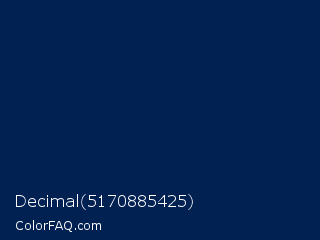 Decimal 5170885425 Color is a very dark blue color and the nearest color is Downriver #092256. Hex code #022153 and RGB value is rgb(2,33,83). In RGB color space, this color is composed of 1% red, 13% green, 33% blue, In CMYK color space, this color is composed of 98% cyan, 60% magenta, 0% yellow , 67% black , In HSL color space, this color has a hue angle of 217° , 95% saturation and 17% lightness.