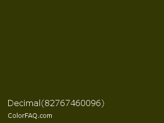 Decimal 82767460096 Color is a very dark yellow color and the nearest color is Waiouru #363c0d. Hex code #333704 and RGB value is rgb(51,55,4). In RGB color space, this color is composed of 20% red, 22% green, 2% blue, In CMYK color space, this color is composed of 7% cyan, 0% magenta, 93% yellow , 78% black , In HSL color space, this color has a hue angle of 65° , 86% saturation and 12% lightness.