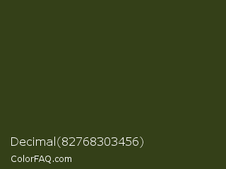 Decimal 82768303456 Color is a very dark lime color and the nearest color is Waiouru #363c0d. Hex code #344018 and RGB value is rgb(52,64,24). In RGB color space, this color is composed of 20% red, 25% green, 9% blue, In CMYK color space, this color is composed of 19% cyan, 0% magenta, 63% yellow , 75% black , In HSL color space, this color has a hue angle of 78° , 45% saturation and 17% lightness.