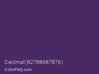 Decimal 82788687876 Color is a dark purple color and the nearest color is Bossanova #4e2a5a. Hex code #492964 and RGB value is rgb(73,41,100). In RGB color space, this color is composed of 29% red, 16% green, 39% blue, In CMYK color space, this color is composed of 27% cyan, 59% magenta, 0% yellow , 61% black , In HSL color space, this color has a hue angle of 273° , 42% saturation and 28% lightness.
