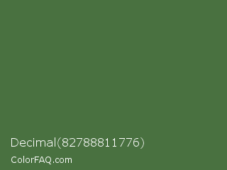 Decimal 82788811776 Color is a normal green color and the nearest color is Chalet Green #516e3d. Hex code #497140 and RGB value is rgb(73,113,64). In RGB color space, this color is composed of 29% red, 44% green, 25% blue, In CMYK color space, this color is composed of 35% cyan, 0% magenta, 43% yellow , 56% black , In HSL color space, this color has a hue angle of 109° , 28% saturation and 35% lightness.