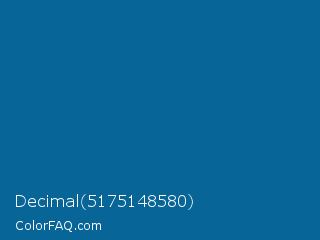 Decimal 5175148580 Color is a normal blue color and the nearest color is Bahama Blue #026395. Hex code #086598 and RGB value is rgb(8,101,152). In RGB color space, this color is composed of 3% red, 40% green, 60% blue, In CMYK color space, this color is composed of 95% cyan, 34% magenta, 0% yellow , 40% black , In HSL color space, this color has a hue angle of 201° , 90% saturation and 31% lightness.
