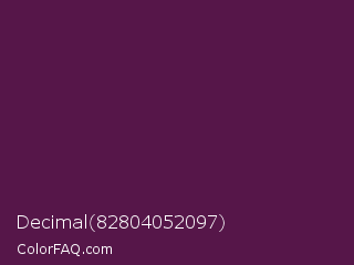Decimal 82804052097 Color is a very dark magenta color and the nearest color is Loulou #460b41. Hex code #561649 and RGB value is rgb(86,22,73). In RGB color space, this color is composed of 34% red, 9% green, 29% blue, In CMYK color space, this color is composed of 0% cyan, 74% magenta, 15% yellow , 66% black , In HSL color space, this color has a hue angle of 312° , 59% saturation and 21% lightness.