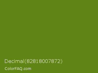 Decimal 82818007872 Color is a dark lime color and the nearest color is Vida Loca #549019. Hex code #618514 and RGB value is rgb(97,133,20). In RGB color space, this color is composed of 38% red, 52% green, 8% blue, In CMYK color space, this color is composed of 27% cyan, 0% magenta, 85% yellow , 48% black , In HSL color space, this color has a hue angle of 79° , 74% saturation and 30% lightness.