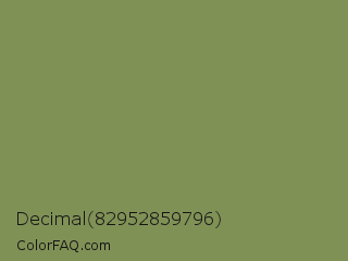 Decimal 82952859796 Color is a normal lime color and the nearest color is Moss Green #8a9a5b. Hex code #809156 and RGB value is rgb(128,145,86). In RGB color space, this color is composed of 50% red, 57% green, 34% blue, In CMYK color space, this color is composed of 12% cyan, 0% magenta, 41% yellow , 43% black , In HSL color space, this color has a hue angle of 77° , 26% saturation and 45% lightness.