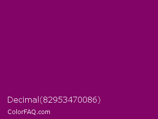 Decimal 82953470086 Color is a dark magenta color and the nearest color is Cardinal Pink #8c055e. Hex code #820466 and RGB value is rgb(130,4,102). In RGB color space, this color is composed of 51% red, 2% green, 40% blue, In CMYK color space, this color is composed of 0% cyan, 97% magenta, 22% yellow , 49% black , In HSL color space, this color has a hue angle of 313° , 94% saturation and 26% lightness.