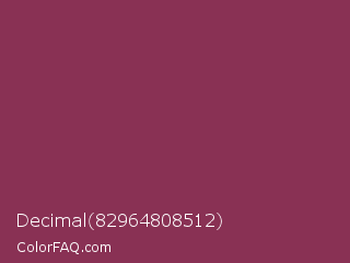 Decimal 82964808512 Color is a normal rose color and the nearest color is Camelot #893456. Hex code #893154 and RGB value is rgb(137,49,84). In RGB color space, this color is composed of 54% red, 19% green, 33% blue, In CMYK color space, this color is composed of 0% cyan, 64% magenta, 39% yellow , 46% black , In HSL color space, this color has a hue angle of 336° , 47% saturation and 36% lightness.