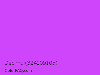 Decimal 324109105 Color is a light purple color and the nearest color is Medium Orchid #ba55d3. Hex code #ce45fb and RGB value is rgb(206,69,251). In RGB color space, this color is composed of 81% red, 27% green, 98% blue, In CMYK color space, this color is composed of 18% cyan, 73% magenta, 0% yellow , 2% black , In HSL color space, this color has a hue angle of 285° , 96% saturation and 63% lightness.