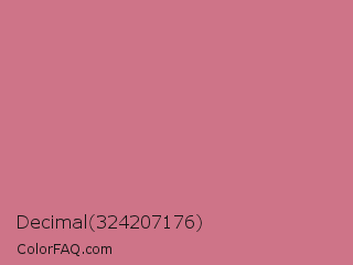 Decimal 324207176 Color is a light red color and the nearest color is Charm #d47494. Hex code #ce7488 and RGB value is rgb(206,116,136). In RGB color space, this color is composed of 81% red, 45% green, 53% blue, In CMYK color space, this color is composed of 0% cyan, 44% magenta, 34% yellow , 19% black , In HSL color space, this color has a hue angle of 347° , 48% saturation and 63% lightness.