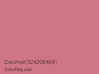 Decimal 324208469 Color is a light red color and the nearest color is New York Pink #d7837f. Hex code #ce7683 and RGB value is rgb(206,118,131). In RGB color space, this color is composed of 81% red, 46% green, 51% blue, In CMYK color space, this color is composed of 0% cyan, 43% magenta, 36% yellow , 19% black , In HSL color space, this color has a hue angle of 351° , 47% saturation and 64% lightness.