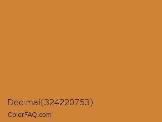 Decimal 324220753 Color is a normal orange color and the nearest color is Bronze #cd7f32. Hex code #ce8237 and RGB value is rgb(206,130,55). In RGB color space, this color is composed of 81% red, 51% green, 22% blue, In CMYK color space, this color is composed of 0% cyan, 37% magenta, 73% yellow , 19% black , In HSL color space, this color has a hue angle of 30° , 61% saturation and 51% lightness.