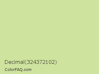 Decimal 324372102 Color is a light lime color and the nearest color is Deco #d2da97. Hex code #cee39e and RGB value is rgb(206,227,158). In RGB color space, this color is composed of 81% red, 89% green, 62% blue, In CMYK color space, this color is composed of 9% cyan, 0% magenta, 30% yellow , 11% black , In HSL color space, this color has a hue angle of 78° , 55% saturation and 75% lightness.