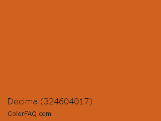 Decimal 324604017 Color is a normal orange color and the nearest color is Piper #c96323. Hex code #cf621f and RGB value is rgb(207,98,31). In RGB color space, this color is composed of 81% red, 38% green, 12% blue, In CMYK color space, this color is composed of 0% cyan, 53% magenta, 85% yellow , 19% black , In HSL color space, this color has a hue angle of 23° , 74% saturation and 47% lightness.