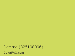 Decimal 325198096 Color is a light yellow color and the nearest color is June Bud #bdda57. Hex code #cfdb5e and RGB value is rgb(207,219,94). In RGB color space, this color is composed of 81% red, 86% green, 37% blue, In CMYK color space, this color is composed of 5% cyan, 0% magenta, 57% yellow , 14% black , In HSL color space, this color has a hue angle of 66° , 63% saturation and 61% lightness.