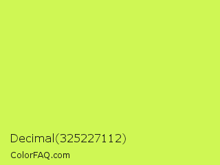 Decimal 325227112 Color is a light lime color and the nearest color is Maximum Green Yellow #d9e650. Hex code #cff754 and RGB value is rgb(207,247,84). In RGB color space, this color is composed of 81% red, 97% green, 33% blue, In CMYK color space, this color is composed of 16% cyan, 0% magenta, 66% yellow , 3% black , In HSL color space, this color has a hue angle of 75° , 91% saturation and 65% lightness.