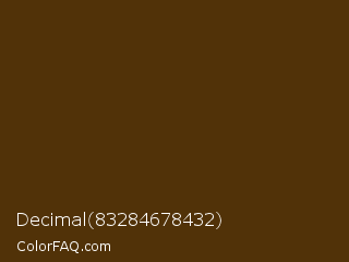 Decimal 83284678432 Color is a very dark orange color and the nearest color is Deep Bronze #4a3004. Hex code #513208 and RGB value is rgb(81,50,8). In RGB color space, this color is composed of 32% red, 20% green, 3% blue, In CMYK color space, this color is composed of 0% cyan, 38% magenta, 90% yellow , 68% black , In HSL color space, this color has a hue angle of 35° , 82% saturation and 17% lightness.