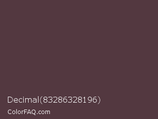 Decimal 83286328196 Color is a dark rose color and the nearest color is Matterhorn #4e3b41. Hex code #533840 and RGB value is rgb(83,56,64). In RGB color space, this color is composed of 33% red, 22% green, 25% blue, In CMYK color space, this color is composed of 0% cyan, 33% magenta, 23% yellow , 67% black , In HSL color space, this color has a hue angle of 342° , 19% saturation and 27% lightness.
