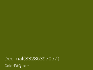 Decimal 83286397057 Color is a very dark yellow color and the nearest color is Saratoga #555b10. Hex code #536209 and RGB value is rgb(83,98,9). In RGB color space, this color is composed of 33% red, 38% green, 4% blue, In CMYK color space, this color is composed of 15% cyan, 0% magenta, 91% yellow , 62% black , In HSL color space, this color has a hue angle of 70° , 83% saturation and 21% lightness.