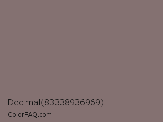 Decimal 83338936969 Color is a normal red color and the nearest color is Spicy Pink #816e71. Hex code #847171 and RGB value is rgb(132,113,113). In RGB color space, this color is composed of 52% red, 44% green, 44% blue, In CMYK color space, this color is composed of 0% cyan, 14% magenta, 14% yellow , 48% black , In HSL color space, this color has a hue angle of 0° , 8% saturation and 48% lightness.
