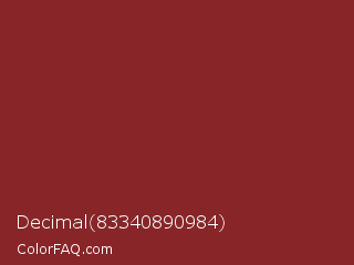 Decimal 83340890984 Color is a normal red color and the nearest color is Antique Ruby #841b2d. Hex code #872528 and RGB value is rgb(135,37,40). In RGB color space, this color is composed of 53% red, 15% green, 16% blue, In CMYK color space, this color is composed of 0% cyan, 73% magenta, 70% yellow , 47% black , In HSL color space, this color has a hue angle of 358° , 57% saturation and 34% lightness.