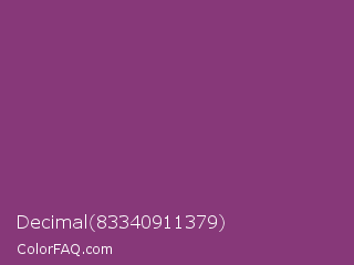 Decimal 83340911379 Color is a normal magenta color and the nearest color is Razzmic Berry Crayola #843179. Hex code #873879 and RGB value is rgb(135,56,121). In RGB color space, this color is composed of 53% red, 22% green, 47% blue, In CMYK color space, this color is composed of 0% cyan, 59% magenta, 10% yellow , 47% black , In HSL color space, this color has a hue angle of 311° , 41% saturation and 37% lightness.