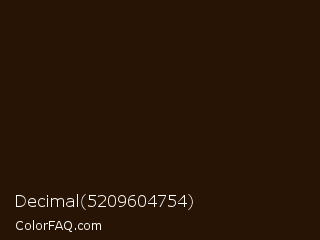 Decimal 5209604754 Color is a almost black orange color and the nearest color is Wood Bark #261105. Hex code #281404 and RGB value is rgb(40,20,4). In RGB color space, this color is composed of 16% red, 8% green, 2% blue, In CMYK color space, this color is composed of 0% cyan, 50% magenta, 90% yellow , 84% black , In HSL color space, this color has a hue angle of 27° , 82% saturation and 9% lightness.