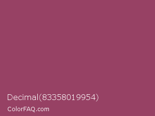 Decimal 83358019954 Color is a normal rose color and the nearest color is Vin Rouge #983d61. Hex code #974164 and RGB value is rgb(151,65,100). In RGB color space, this color is composed of 59% red, 25% green, 39% blue, In CMYK color space, this color is composed of 0% cyan, 57% magenta, 34% yellow , 41% black , In HSL color space, this color has a hue angle of 336° , 40% saturation and 42% lightness.