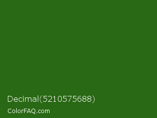 Decimal 5210575688 Color is a dark green color and the nearest color is Dell #396413. Hex code #296814 and RGB value is rgb(41,104,20). In RGB color space, this color is composed of 16% red, 41% green, 8% blue, In CMYK color space, this color is composed of 61% cyan, 0% magenta, 81% yellow , 59% black , In HSL color space, this color has a hue angle of 105° , 68% saturation and 24% lightness.