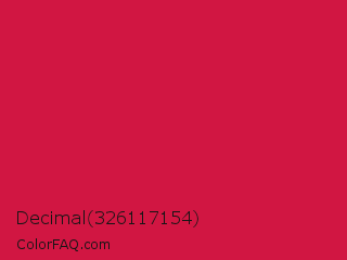 Decimal 326117154 Color is a normal red color and the nearest color is Crimson #dc143c. Hex code #d11642 and RGB value is rgb(209,22,66). In RGB color space, this color is composed of 82% red, 9% green, 26% blue, In CMYK color space, this color is composed of 0% cyan, 89% magenta, 68% yellow , 18% black , In HSL color space, this color has a hue angle of 346° , 81% saturation and 45% lightness.